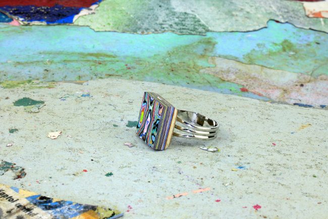 The material was salvaged from Holland’s oldest and most predominant legal graffiti wall: the ‘Prinses Irene tunnel’ in Delft. The tunnel was taken down in 2015. Decades of different colors and patterns, layered by street artists from all ov contribute to these handcrafted item’s unique material and sentimental value, piece by piece.